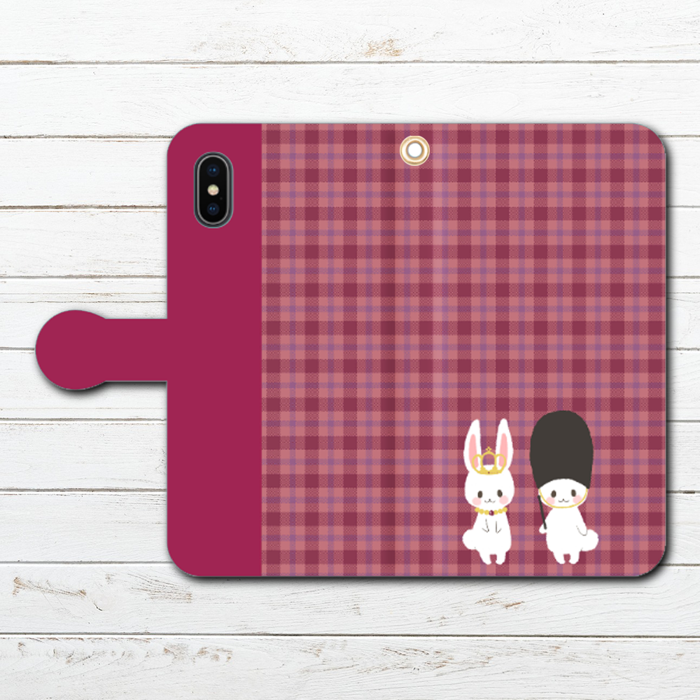 タイトル:チェックうさぎ手帳型iPhone,Androidケース(赤) 作:Hanami です。