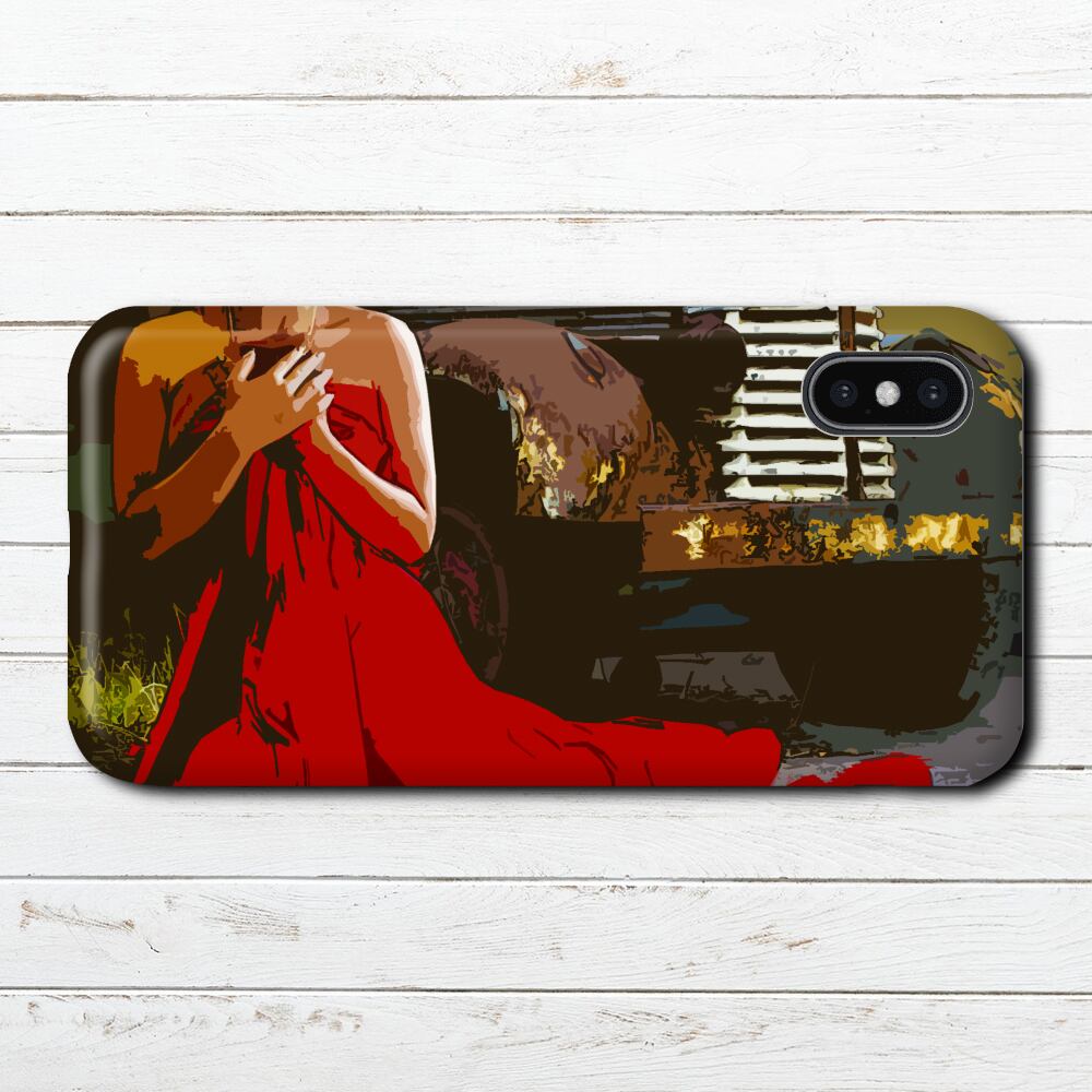 iPhoneケース スマホケース タイトル:美女とドレスと古びた車 です。