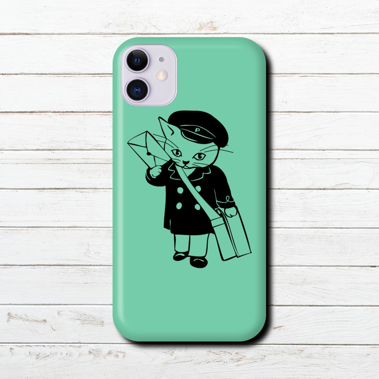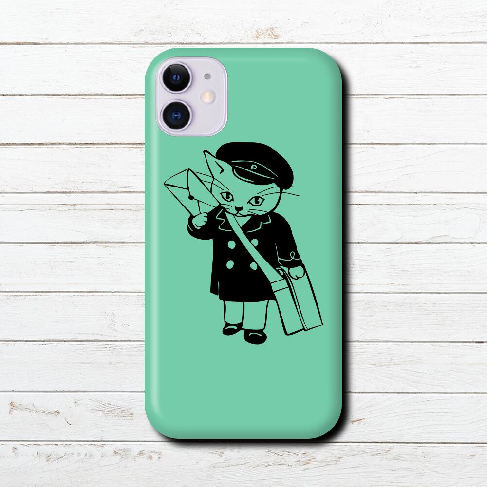 iPhoneケース・スマホケース タイトル:ねこの郵便局員 カラー ミントグリーン です。