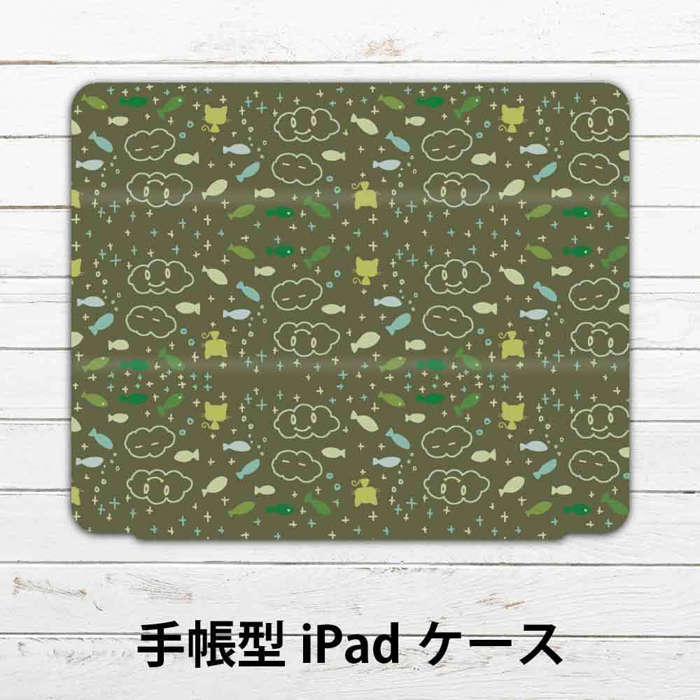 手帳型iPadケース タイトル:パターンデザイン9・ねこくもさかな 作:水無月りい です。